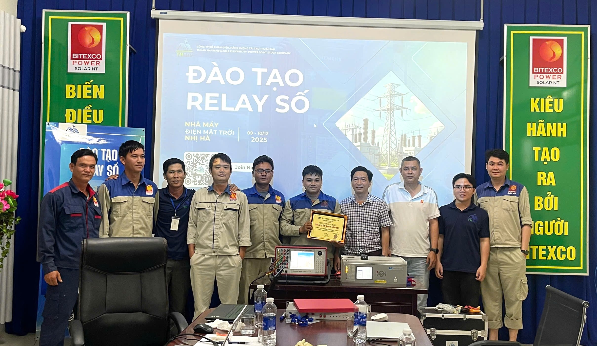 Ngày 9–10/12/2025, đội ngũ cán bộ quản lý, trưởng ca và kỹ sư kỹ thuật tại nhà máy điện mặt trời Nhị Hà của Công ty TNHH MTV Solar Power Ninh Thuận (thôn 3, xã Phước Hà, Khánh Hòa) đã tham gia chương trình bồi dưỡng kiến thức relay số nhằm nâng cao năng lực vận hành an toàn, ổn định cho nhà máy.