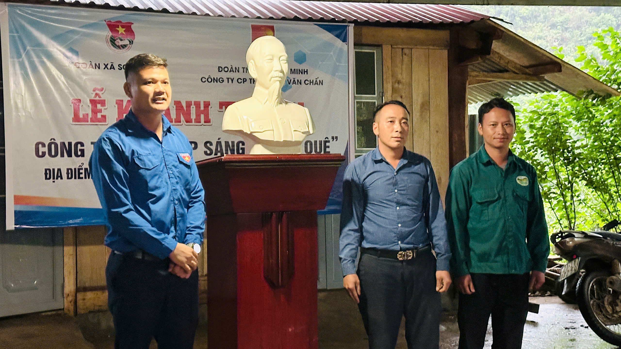 Nhân dịp này, Đoàn Thanh niên Công ty CP Thủy điện Văn Chấn trao tặng bục đặt tượng Bác Hồ tại hội trường thôn Làng Mảnh.