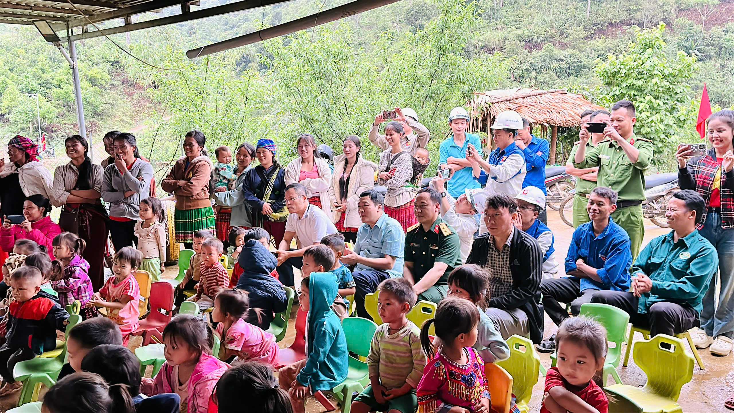 Đông đảo nhân dân đổ về điểm trường Làng Mảnh để chung vui khi dự án “Thắp sáng đường quê” thành công, góp phần giúp đời sống bà con từng bước đổi mới, phát triển.