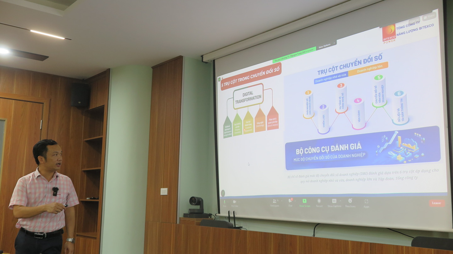 Tại buổi đào tạo, ông Linh đã chia sẻ bức tranh tổng thể về chuyển đổi số tại Việt Nam nói chung và trong ngành năng lượng nói riêng, những nhận thức, thuật ngữ, quy tắc, quy trình, cấu trúc, tính đặc trưng… trong chuyển đổi số. Qua đó, mọi người đã thấy rõ các lợi ích dễ nhận biết nhất của chuyển đổi số đối với doanh nghiệp như: Tiết kiệm chi phí vận hành, tiếp cận được nhiều khách hàng hơn trong thời gian dài hơn, lãnh đạo ra quyết định nhanh chóng và chính xác hơn nhờ hệ thống báo cáo thông suốt kịp thời, tối ưu hóa được năng suất làm việc của nhân viên… Những điều này giúp tăng hiệu quả hoạt động và tính cạnh tranh của doanh nghiệp được nâng cao.