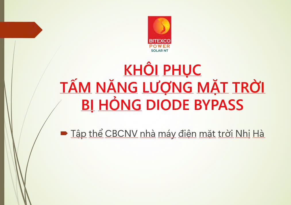 17. Khôi phục các tấm PV bị hỏng trong quá trình vận hành phát điện (Tập thể cán bộ, công nhân viên nhà máy điện mặt trời Nhị Hà, Công ty TNHH MTV Solar Power Ninh Thuận)