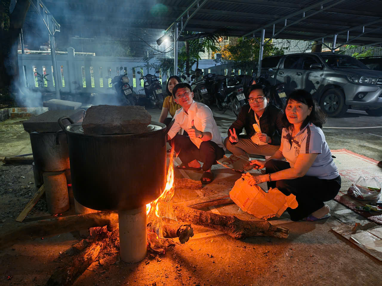 Bên nồi bánh đỏ lửa, tiếng cười nói rôm rả làm ấm thêm không khí cuối năm, xua tan mệt nhọc sau một năm lao động hăng say. Không chỉ là hơi ấm của bếp lửa mà còn là hơi ấm của tình đồng nghiệp, sự sẻ chia và gắn kết nội bộ.