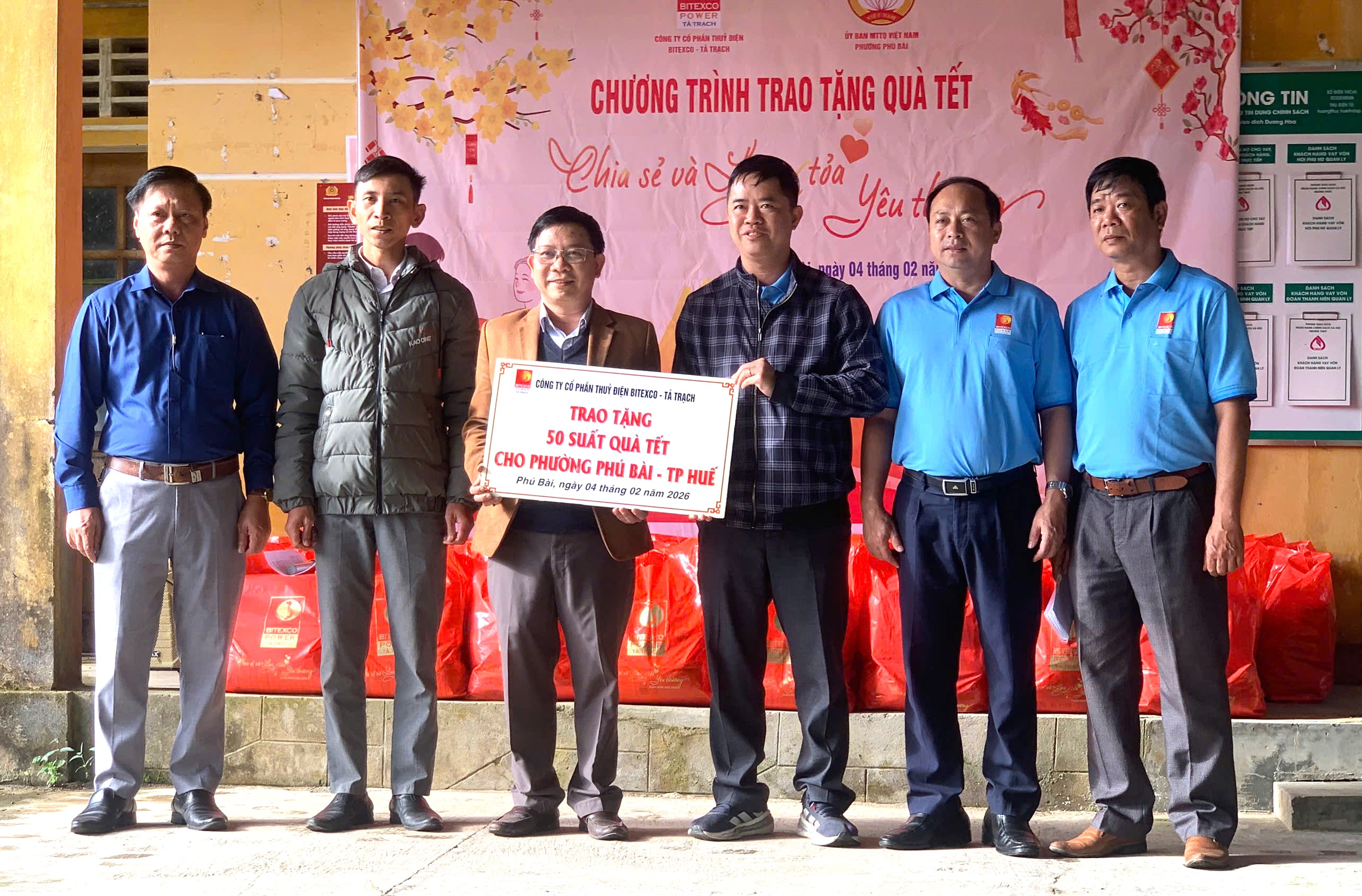 Ngày 3 – 4/2/2026 vừa qua, Công ty CP Thủy điện Bình Điền đã trao 150 suất quà tới bà con trú tại thôn Bồ Hòn cũng như xã Bình Điền. Công ty CP Thủy điện Bitexco – Tả Trạch trao quà Tết tới 50 hộ dân có hoàn cảnh khó khăn tại thôn Phú Hộ, phường Phú Bài, góp phần sẻ chia những khó khăn và lan tỏa tinh thần tương thân tương ái trong cộng đồng.