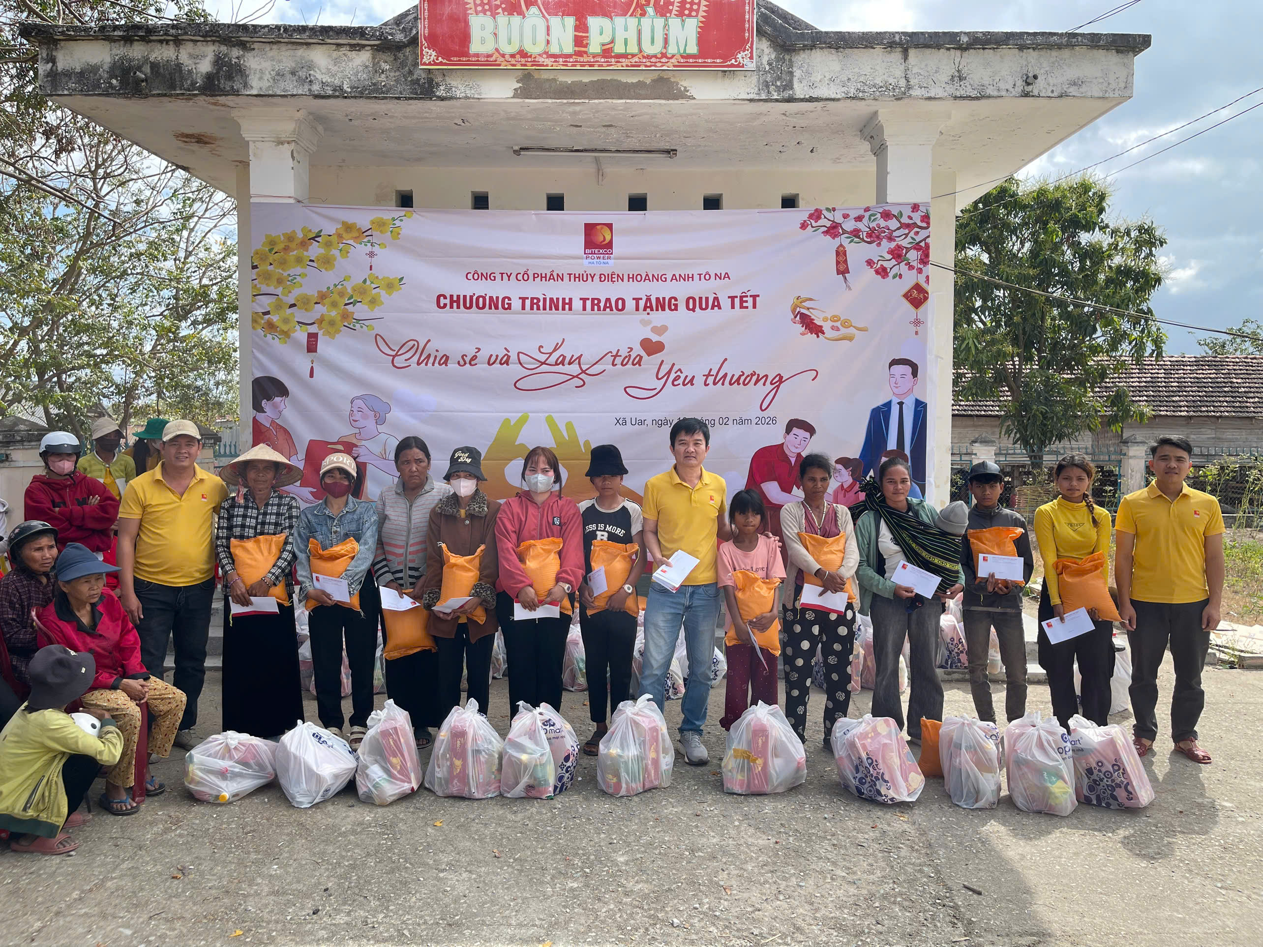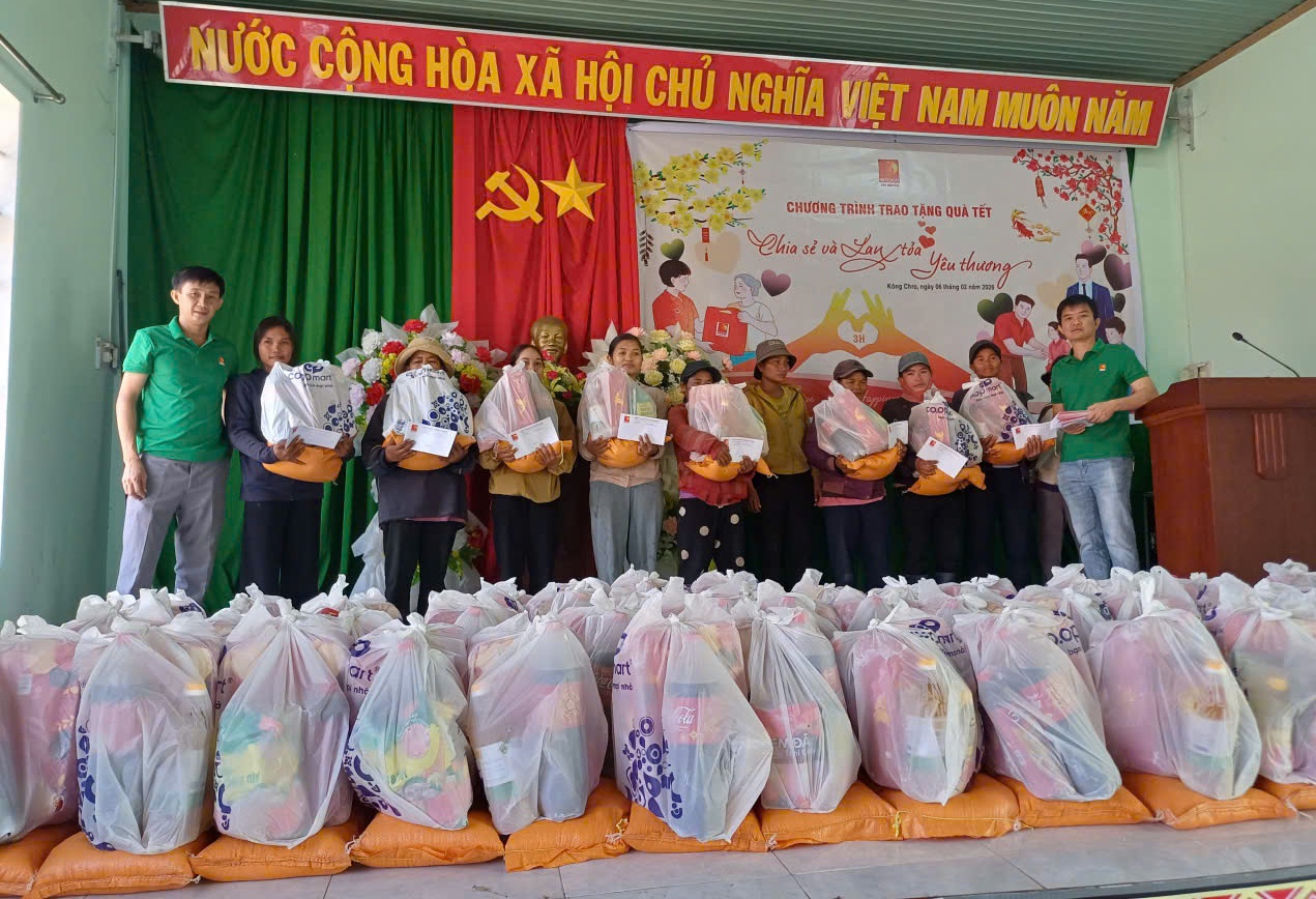 Cũng tại Gia Lai, sáng 10/2/2026, Công ty CP Thủy điện Hoàng Anh Tô Na đã tổ chức chương trình trao quà tới 70 hộ nghèo và cận nghèo tại buôn Phùm, xã Uar nhân dịp Tết Nguyên đán Bính Ngọ 2026.