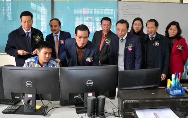 Các đồng chí lãnh đạo tỉnh tham quan khu vực điều hành Nhà máy.