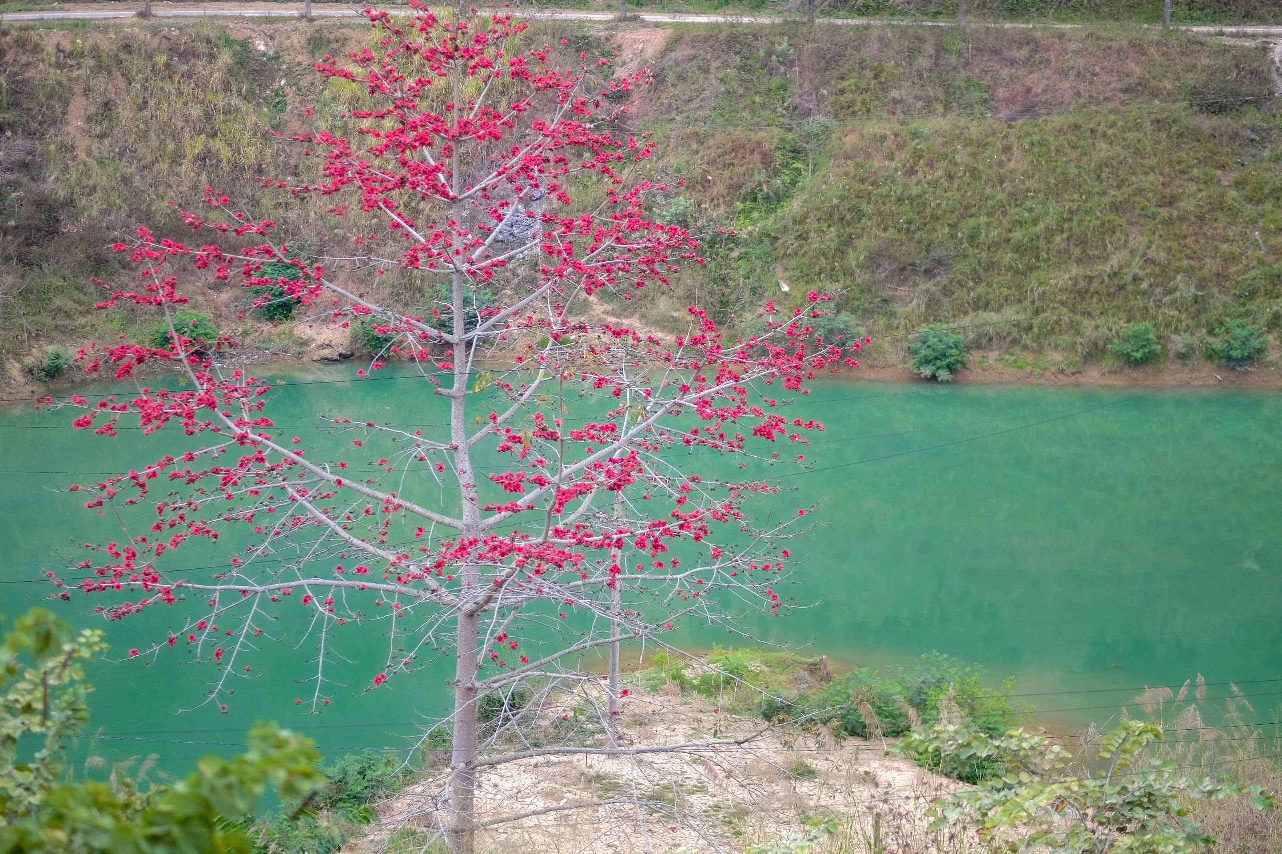 Thời điểm này, núi rừng Mèo Vạc ven dòng Nho Quế được tô điểm thêm sắc đỏ thắm rực rỡ của hoa gạo.
