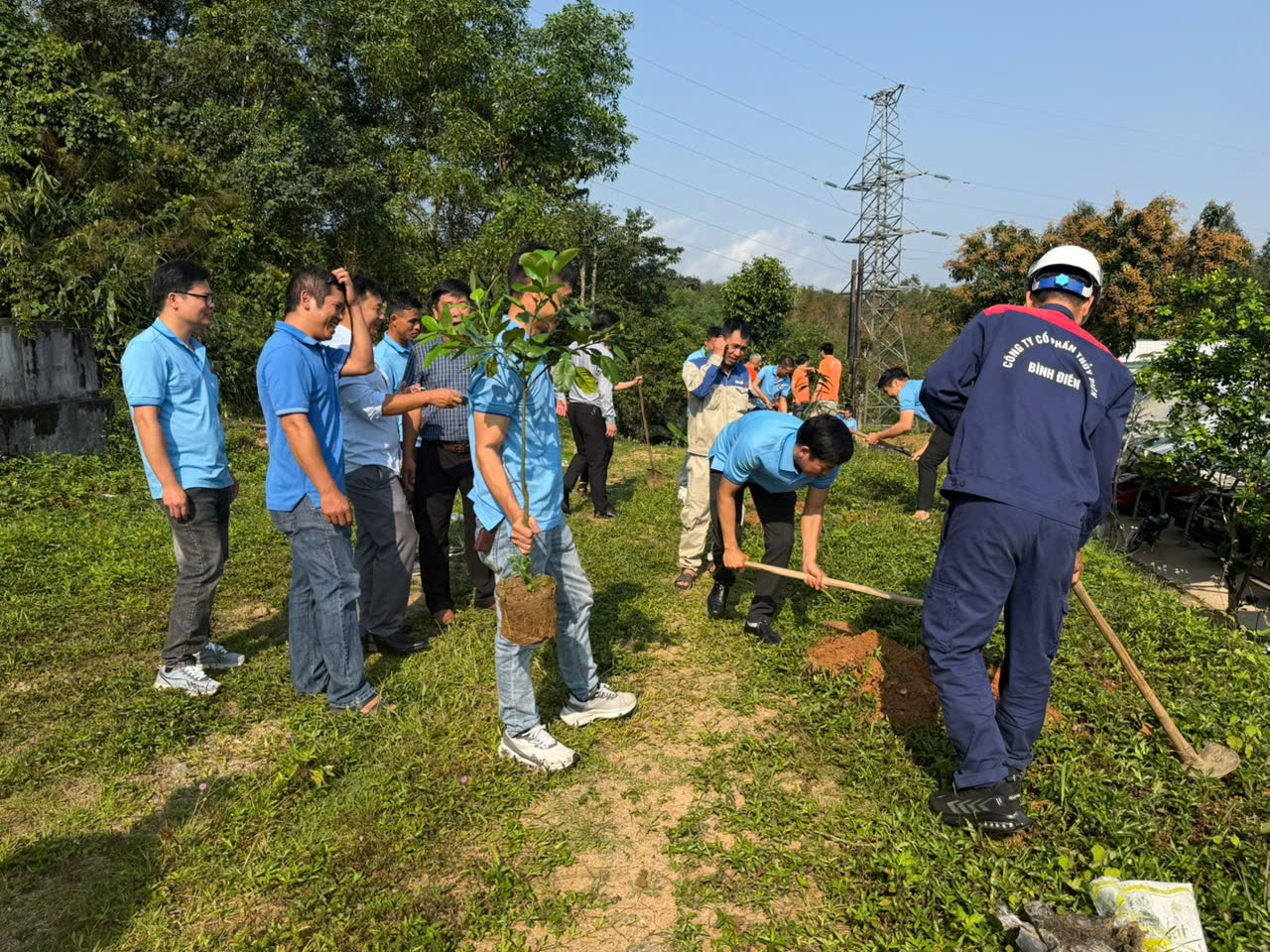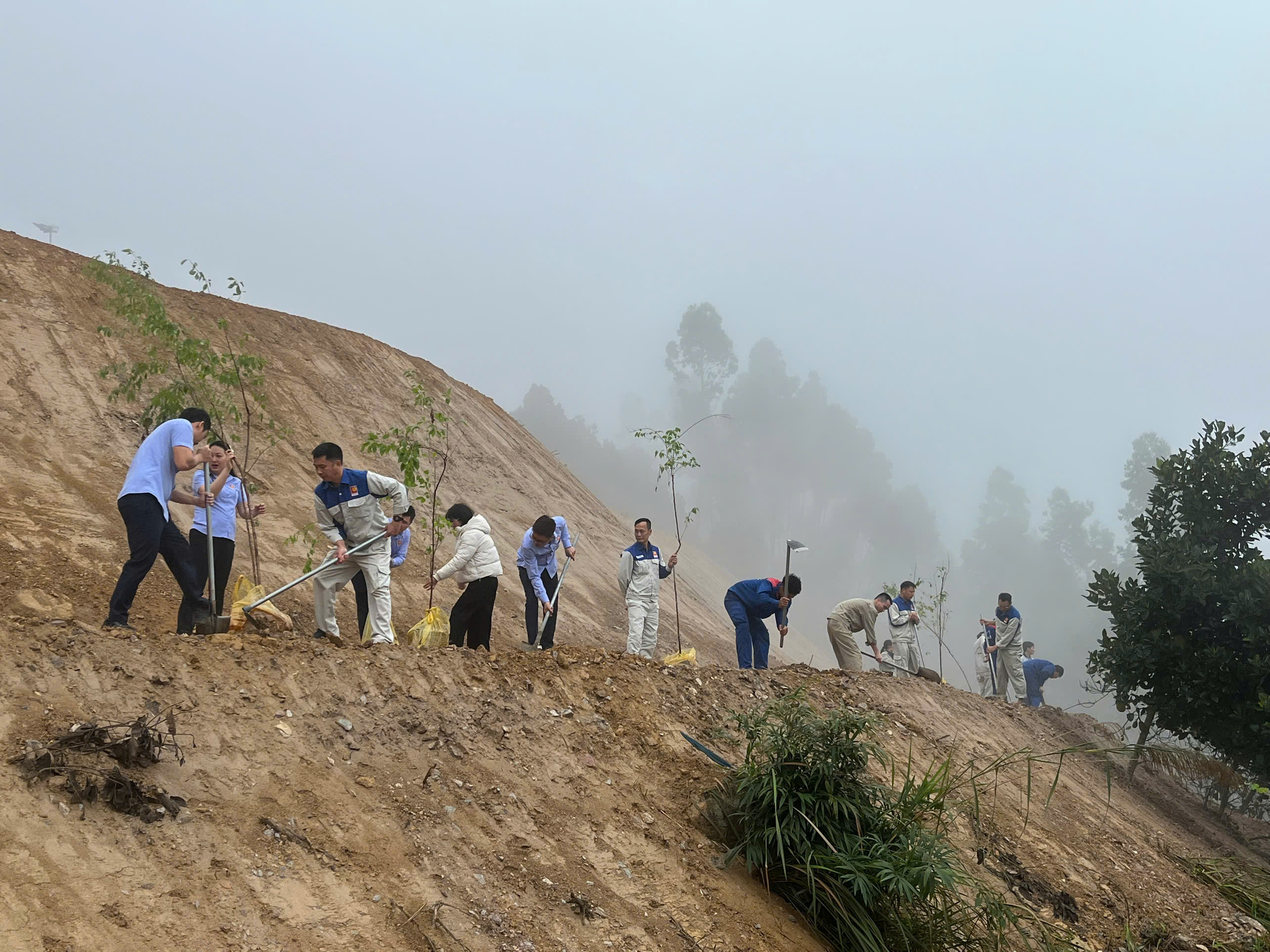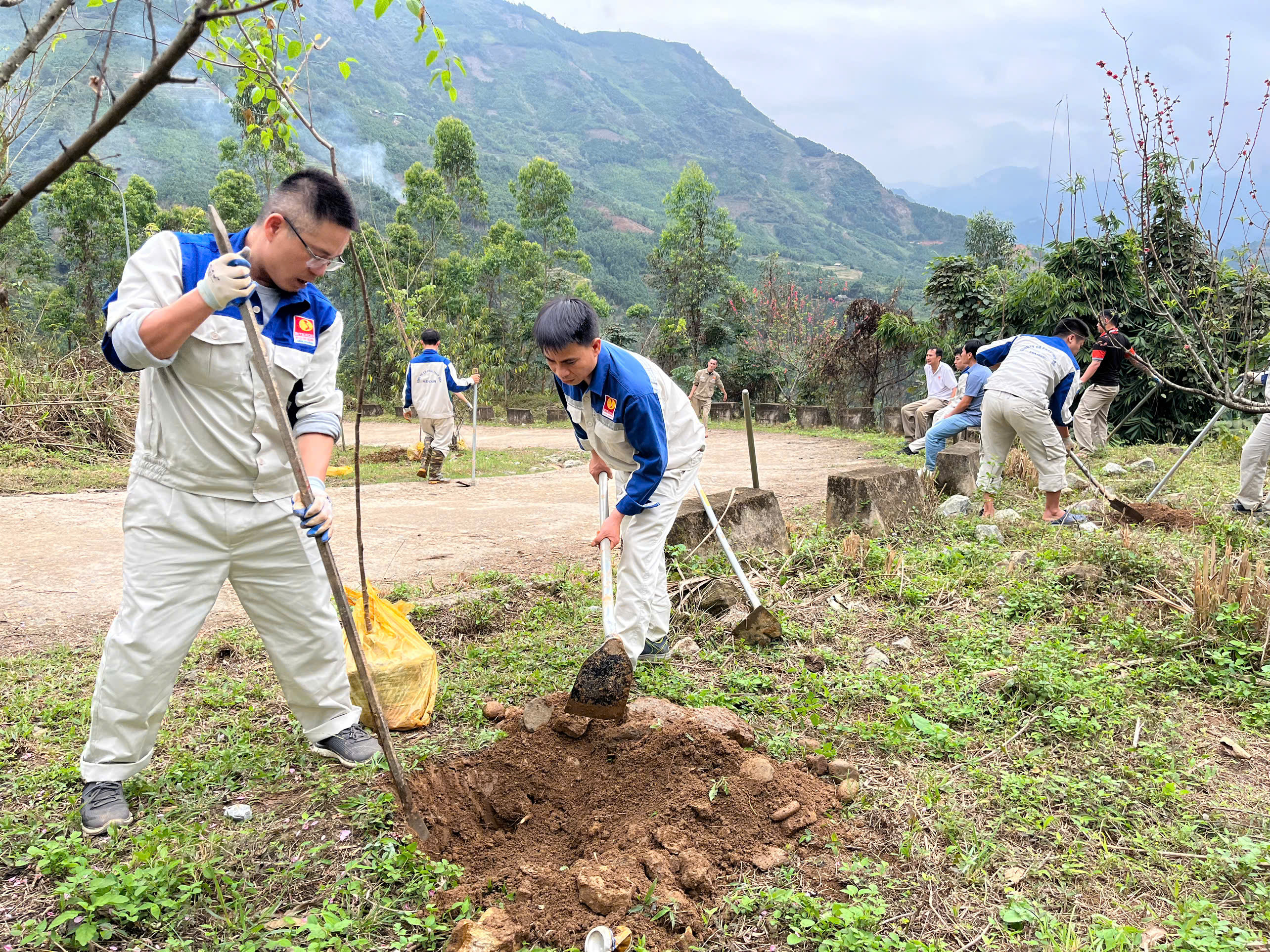 Các cán bộ, công nhân viên thủy điện Nho Quế 3 hào hứng tham gia Tết trồng cây đầu Xuân Bính Ngọ 2026.