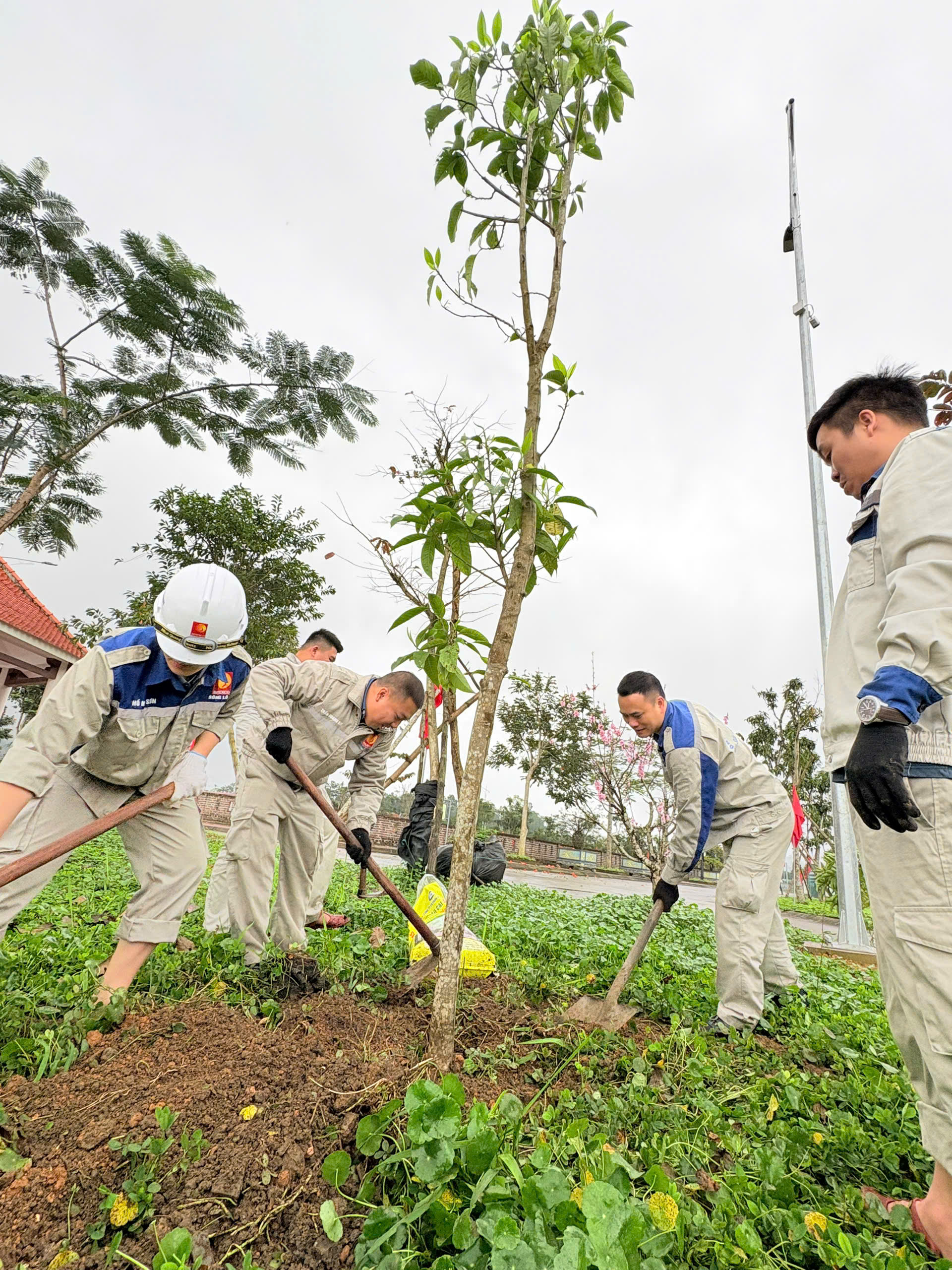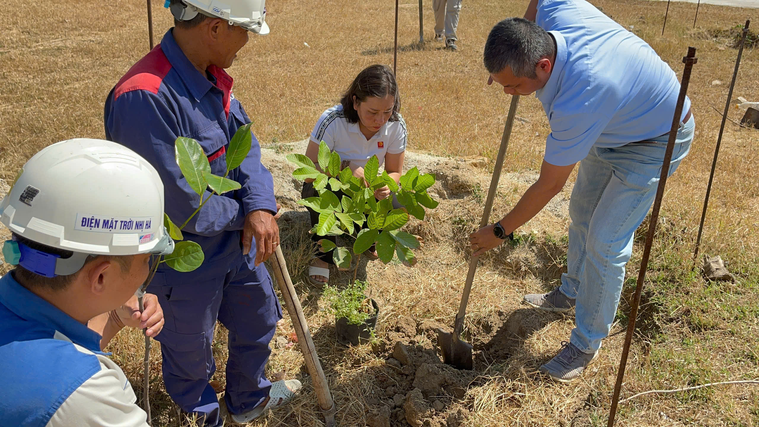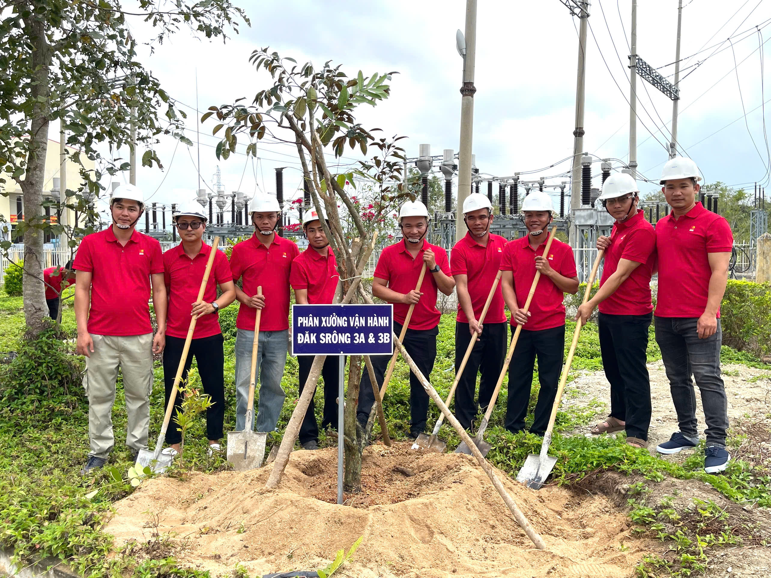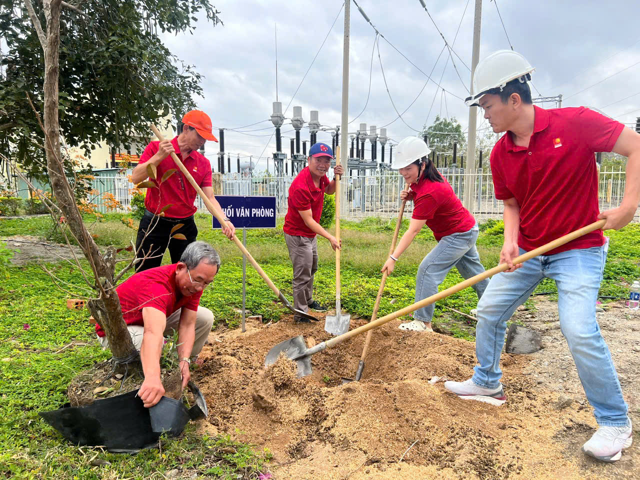 Các anh, chị em ở nhà máy điện mặt trời Nhị Hà (tỉnh Khánh Hòa) cũng đã tham gia Tết trồng cây vào sáng 23/2.