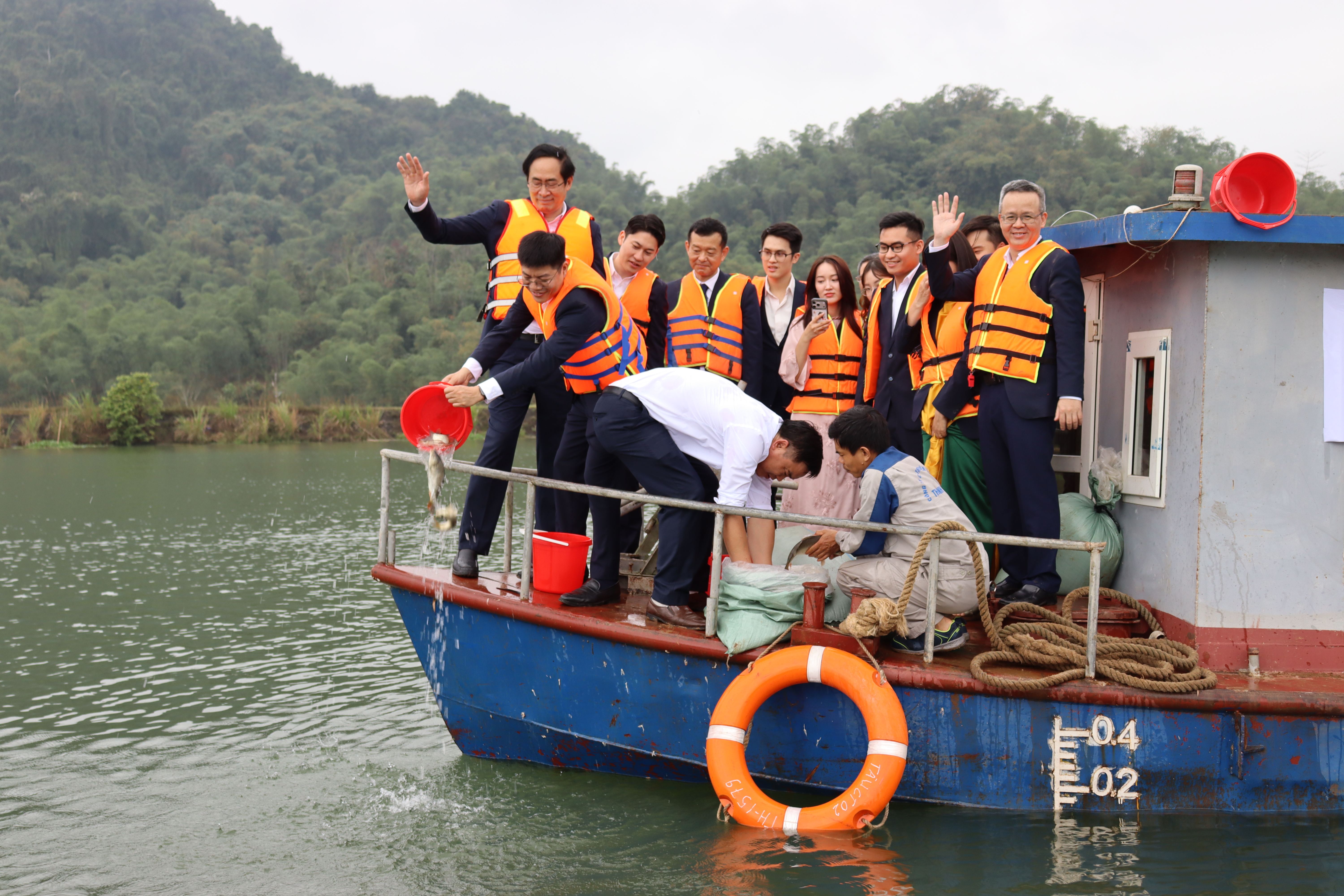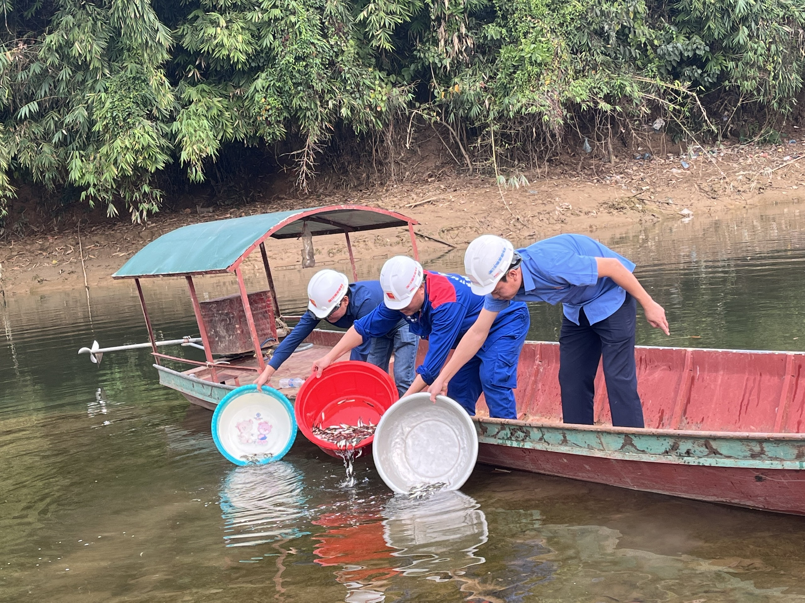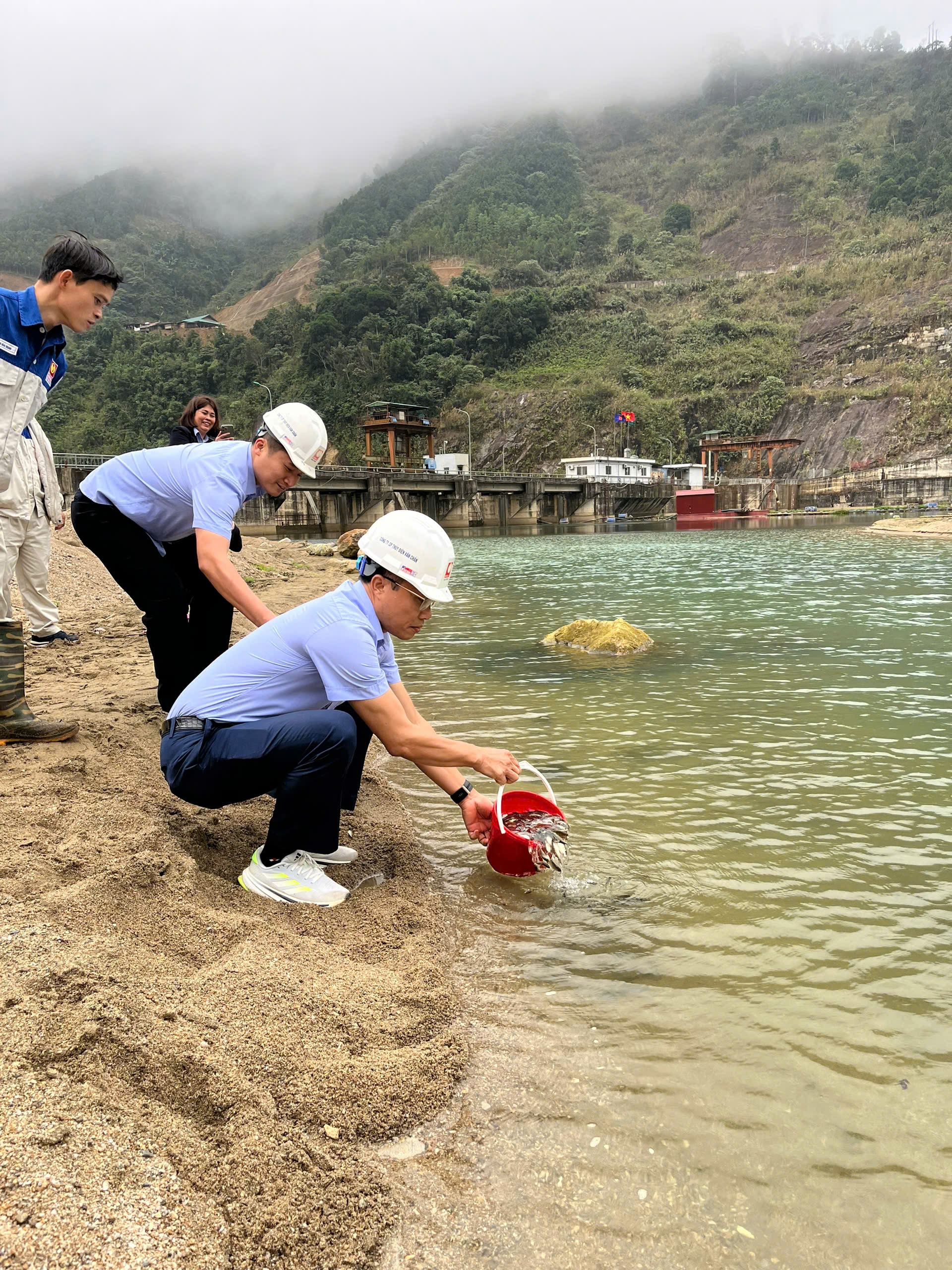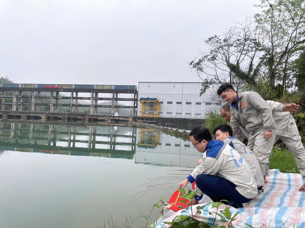 Ngày khai Xuân Bính Ngọ 2026, các anh, chị em Công ty CP Thủy điện Sông Lô 4 cùng nhau thả cá tái tạo nguồn lợi thủy sản.