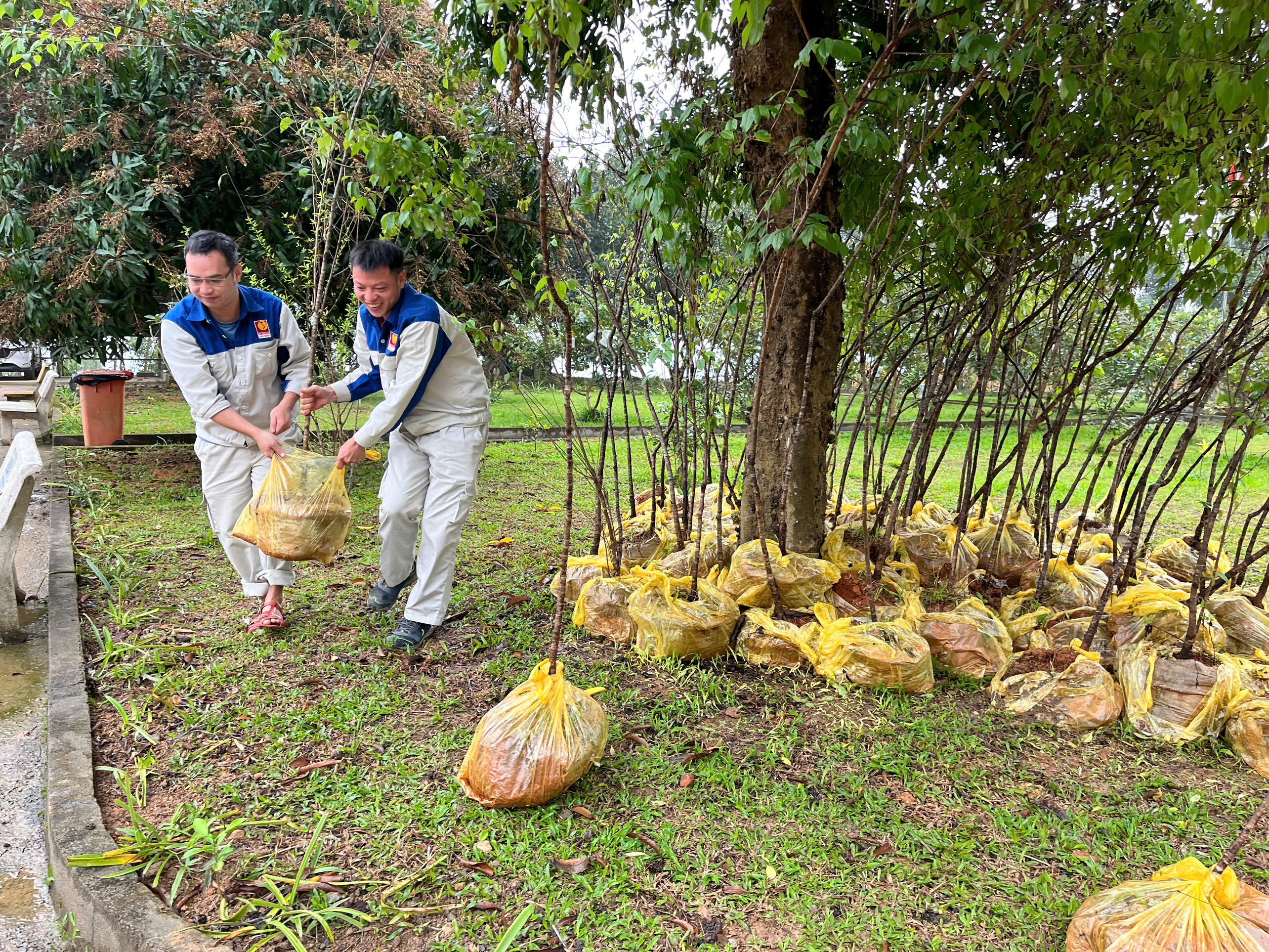Anh em phân xưởng Vận hành chụp ảnh kỷ niệm bên cây vú sữa trồng trong ngày hội trồng cây.