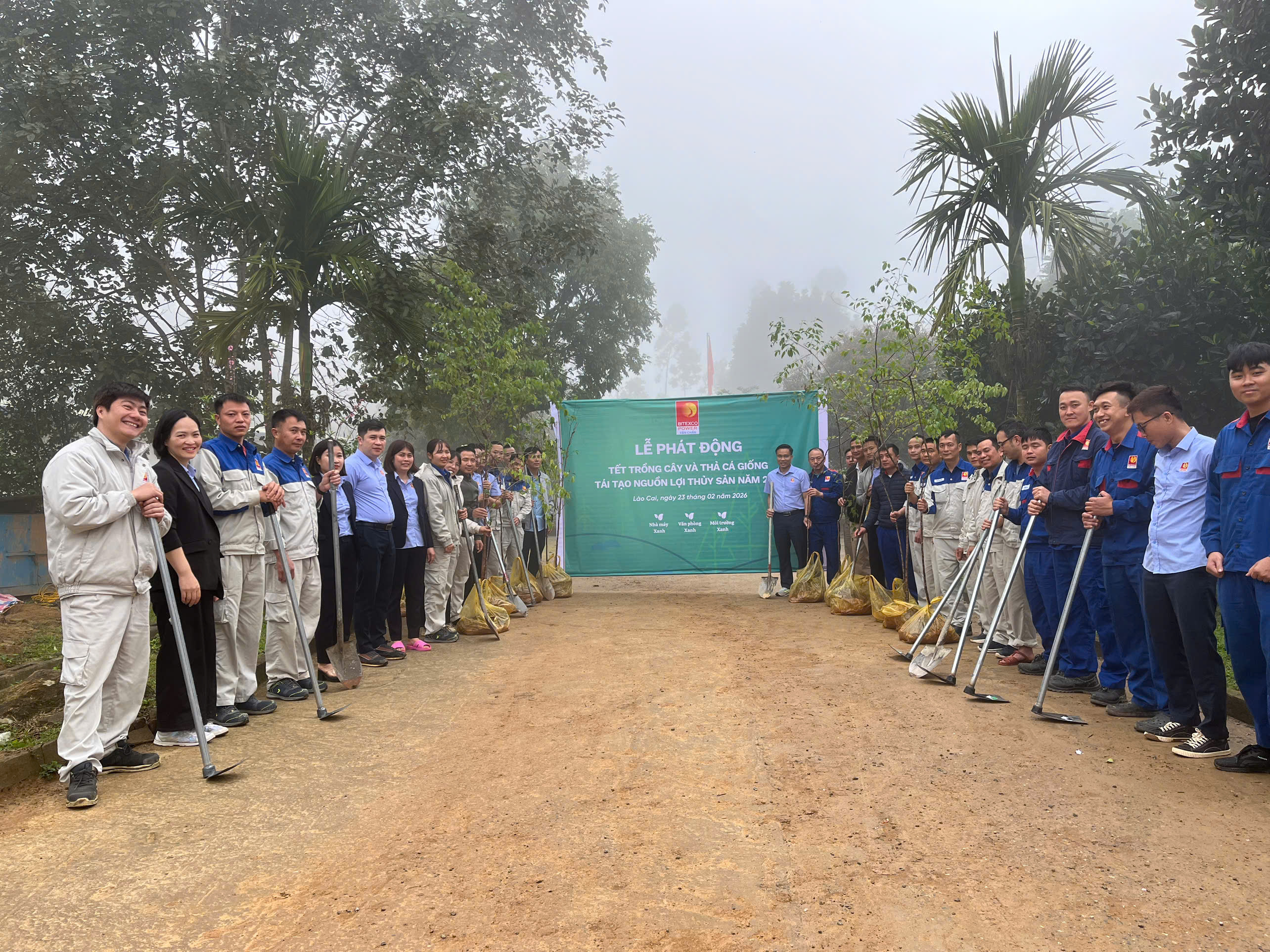 Cụm thủy điện Bitexco Power ở khu vực Lai Châu, Điện Biên, Lào Cai cũng phát động trồng cây, thả cá đầu Xuân mới.