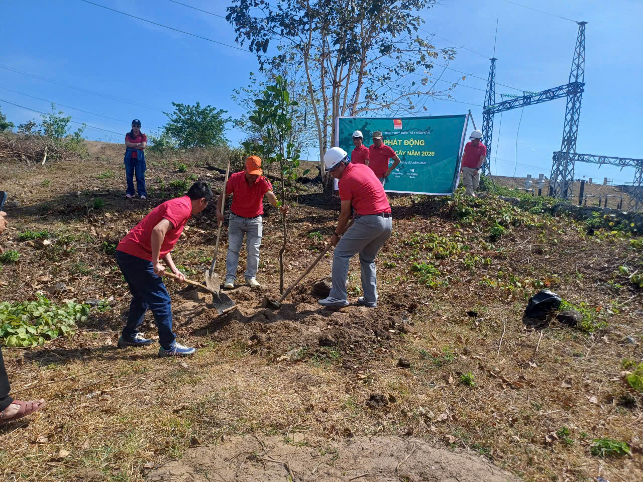 Các anh, chị em Công ty TNHH Thủy điện Tây Nguyên hào hứng tham gia Tết trồng cây trong ngày khai Xuân Bính Ngọ 2026.