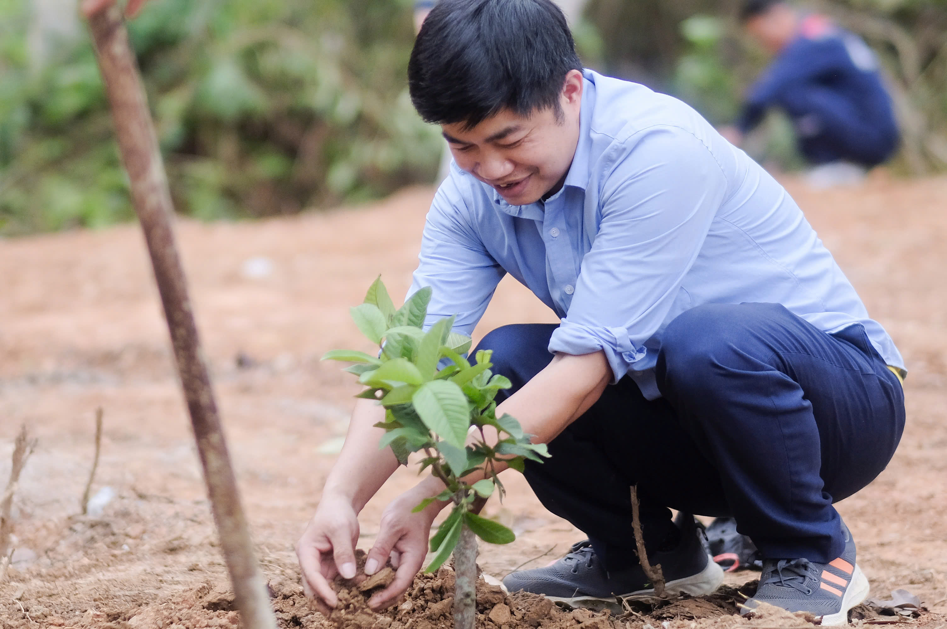 Trồng 130 cây tạo thêm mảng xanh bền vững ở thủy điện Nho Quế 2