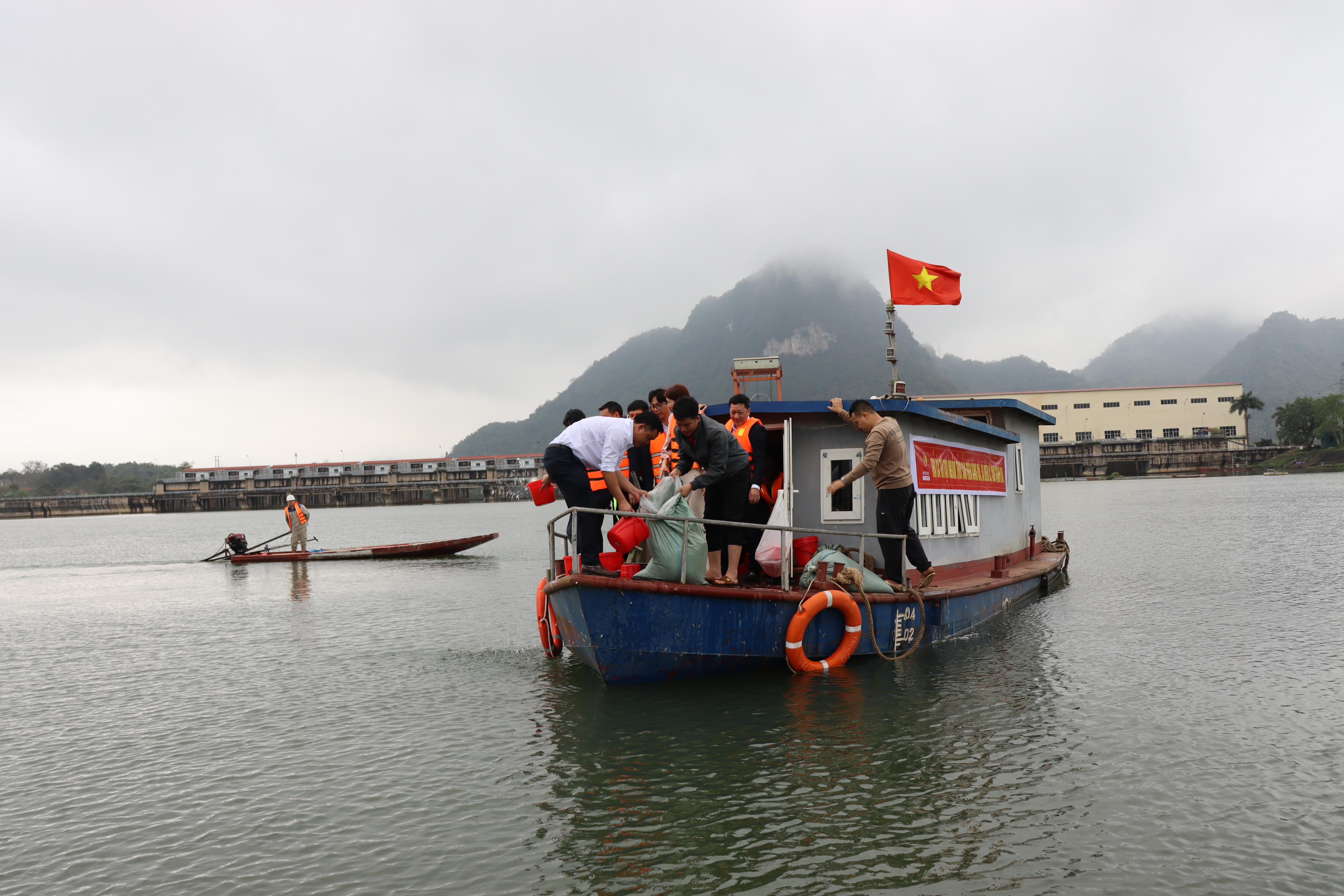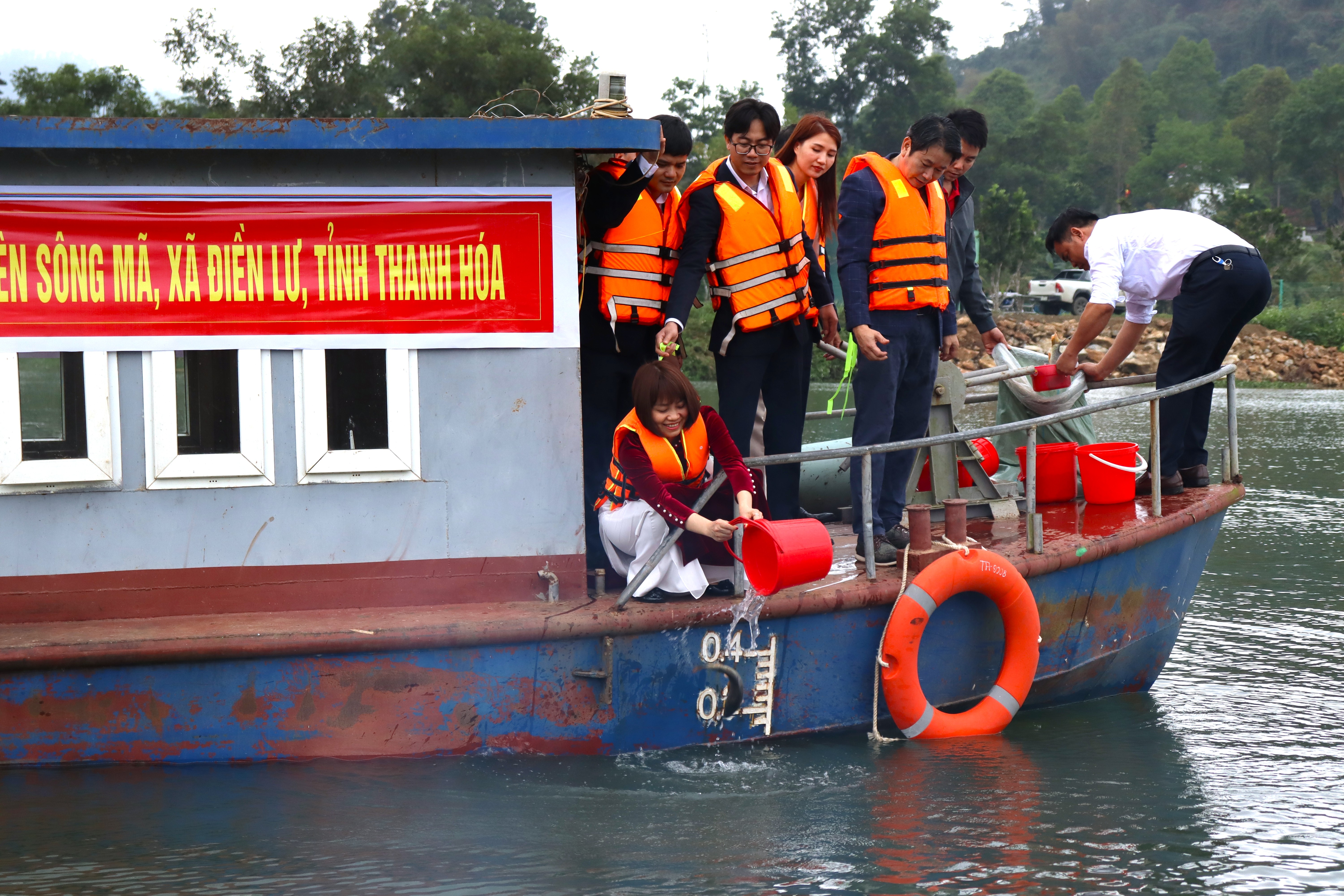 Cùng với trồng cây, hoạt động thả cá giống cũng được thực hiện trong Lễ phát động.