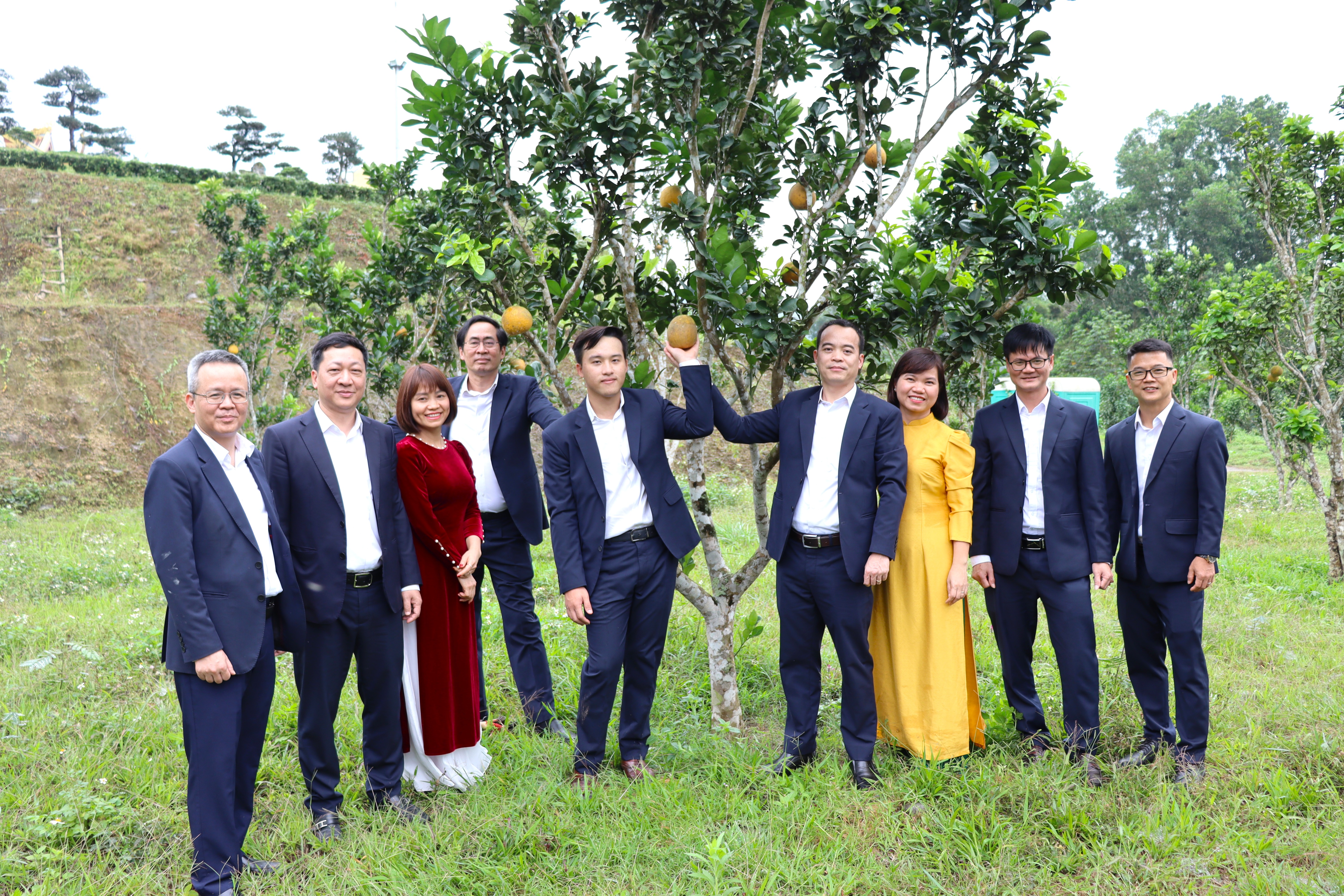 Những gốc bưởi được trồng trong dịp Xuân Ất Tỵ 2025 cũng đã cho những quả ngọt đầu tiên sau một năm chăm sóc.