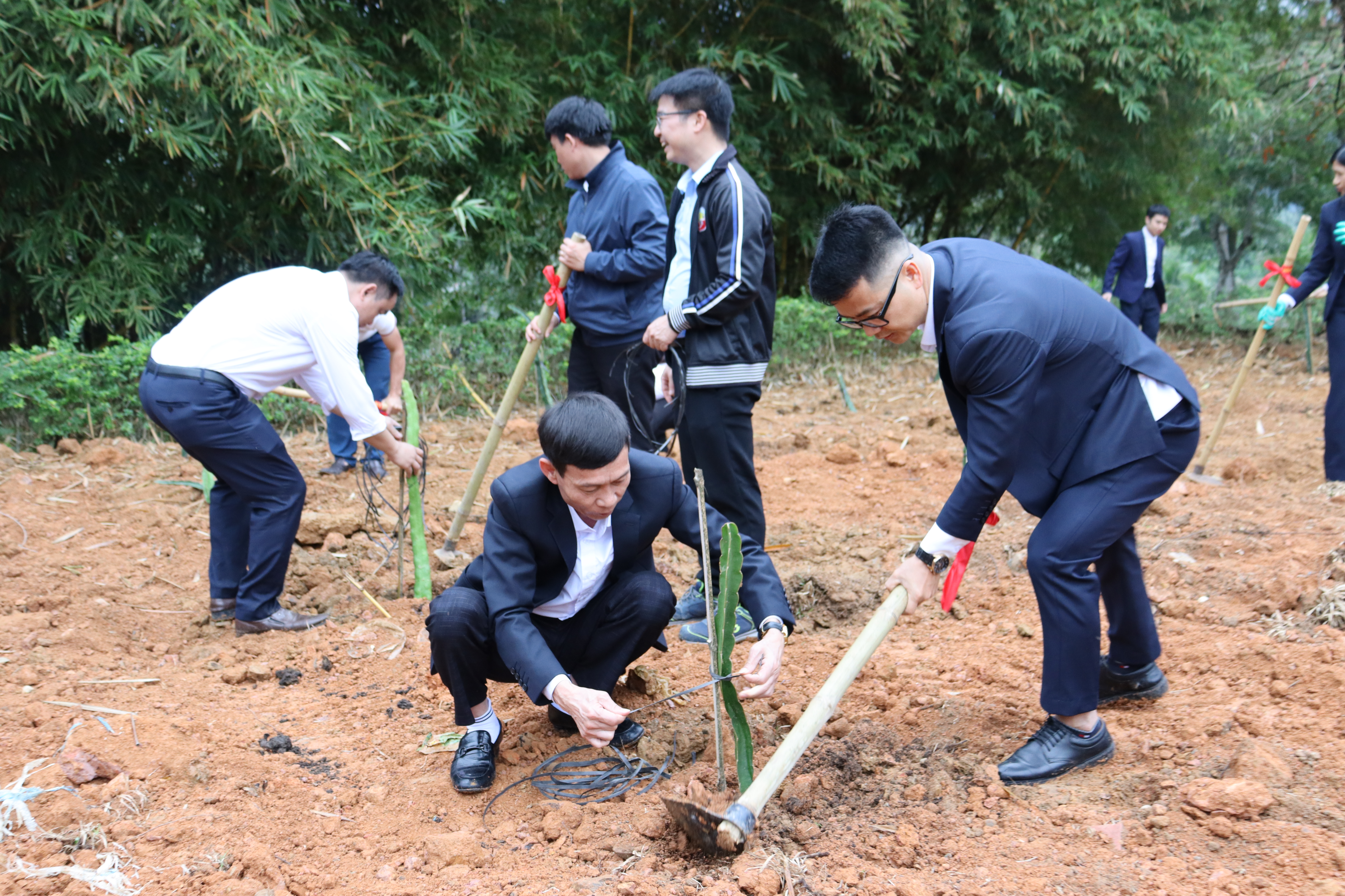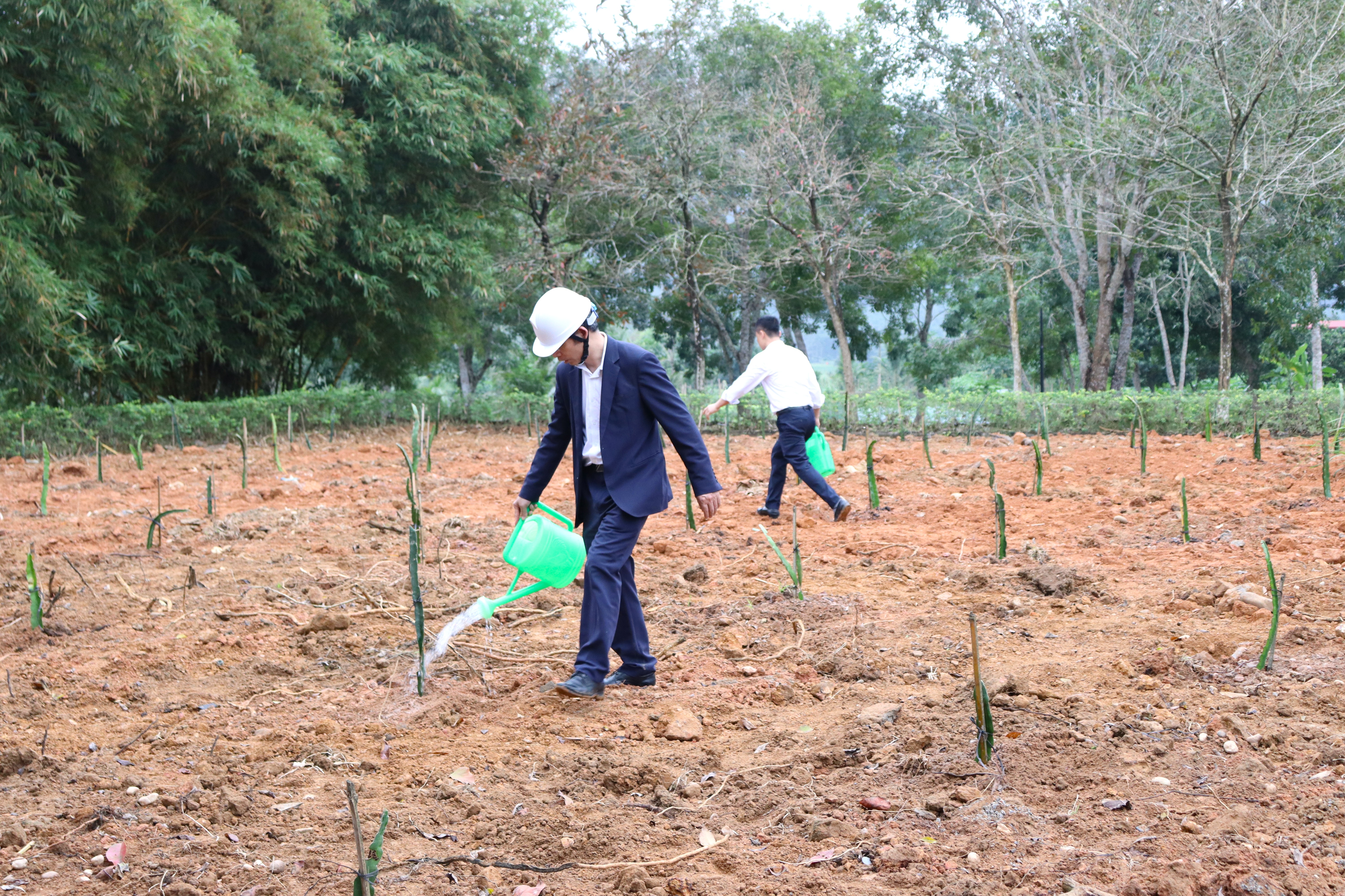 Hưởng ứng Lễ phát động, các cán bộ, công nhân viên Bitexco Power và thủy điện Hoàng Anh Thanh Hóa đã trồng 120 gốc thanh long ruột đỏ ở khu đất trống trước cổng văn phòng công ty.