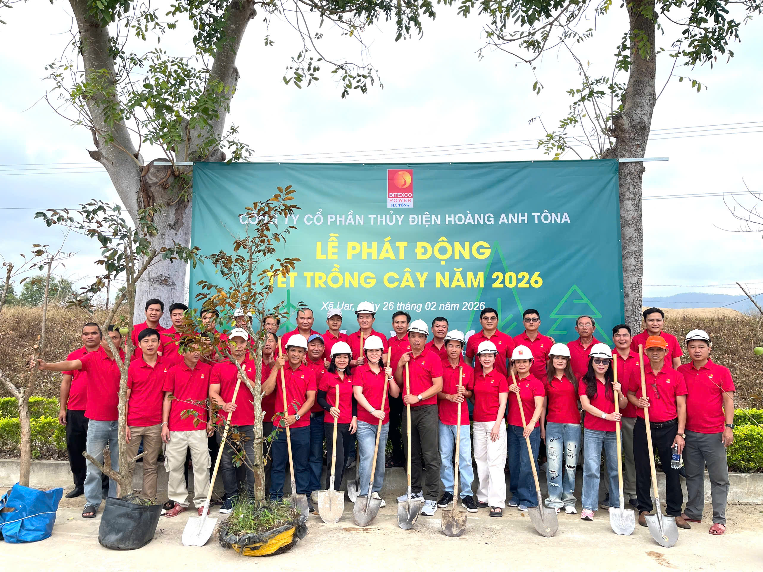 Tập thể thủy điện Hoàng Anh Tô Na (tỉnh Gia Lai) ra quần trồng cây đầu Xuân mới vào ngày 26/2/2026.
