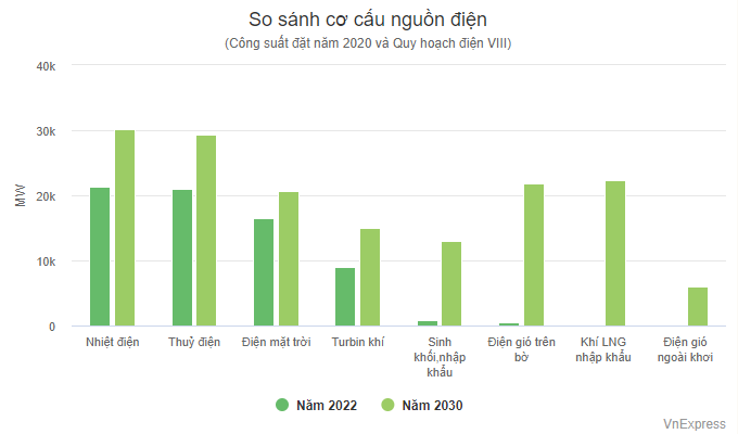 Điểm mới ở quy hoạch này so với trước đây là ưu tiên phát triển năng lượng tái tạo, chiếm khoảng 31-39% vào 2030, tương đương 5.000-10.000 MW. Tỷ lệ này có thể tăng lên 47% cùng các điều kiện cam kết theo tuyên bố chính trị về thiết lập quan hệ đối tác chuyển đổi năng lượng công bằng với Việt Nam (JETP). Tỷ trọng nguồn điện này trong hệ thống dự kiến tăng lên 67,5-71,5% vào 2050.