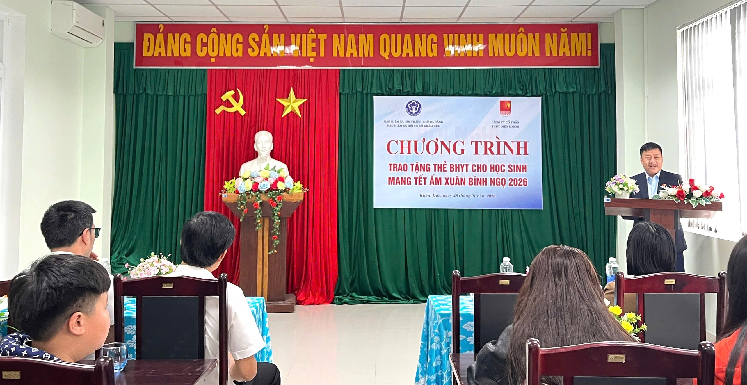 Ngày 28/1/2026, tại Bảo hiểm xã hội cơ sở Khâm Đức (TP Đà Nẵng) đã diễn ra buổi lễ trao thẻ bảo hiểm y tế cho các em học sinh có hoàn cảnh khó khăn trên địa bàn xã Khâm Đức. Đây là hoạt động an sinh xã hội ý nghĩa do Công ty CP Thủy điện Đak Mi hỗ trợ, nhằm tiếp sức cho các em vững bước đến trường.