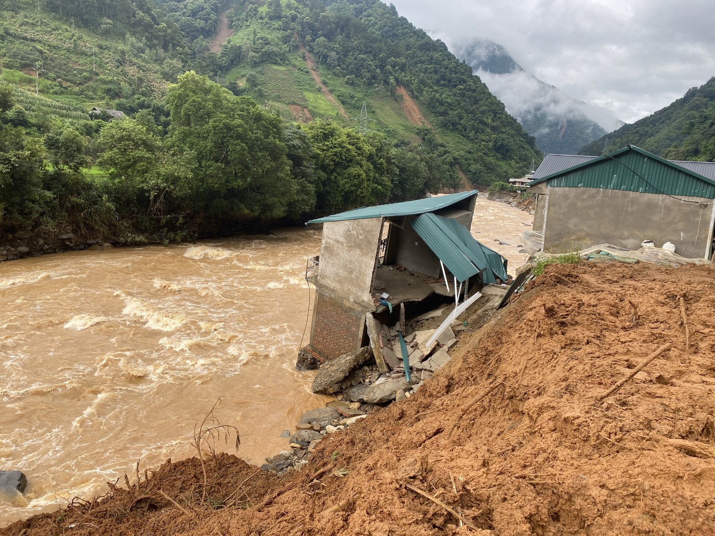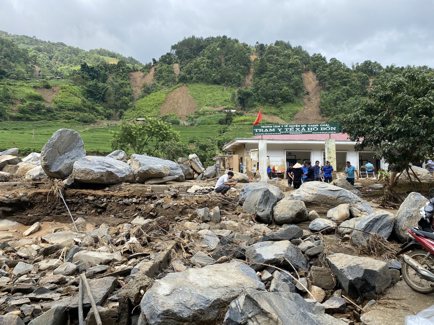 Trận lũ quét qua trung tâm xã Hồ Bốn nên nhiều công trình của địa phương bị ảnh hưởng.