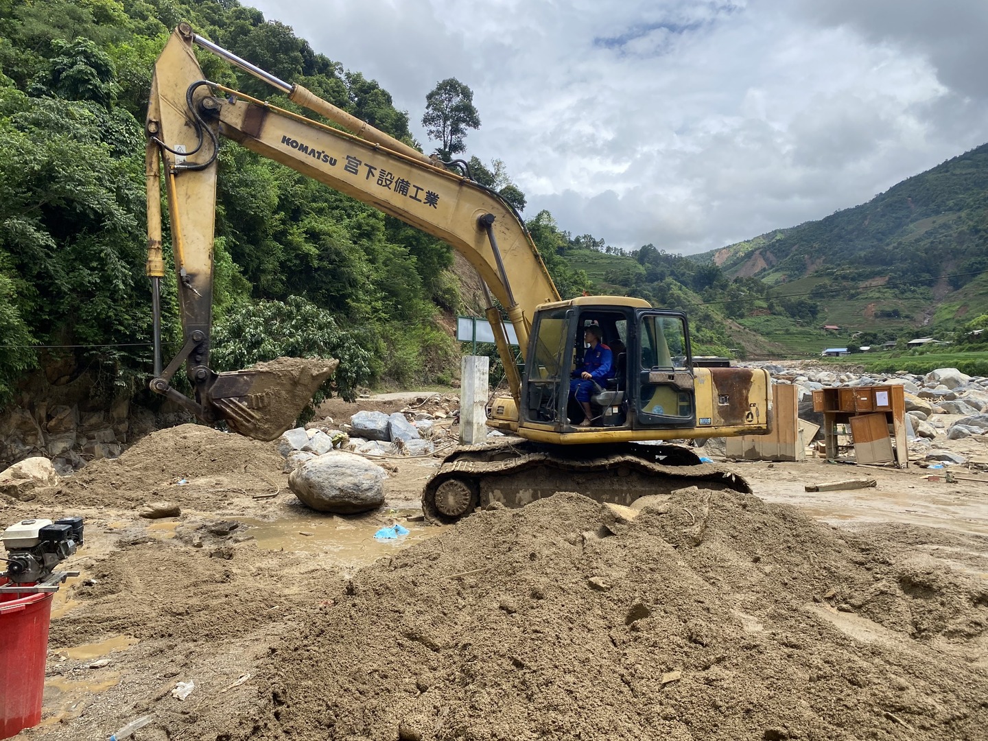 Hiện đội hỗ trợ của thủy điện Văn Chấn cùng chính quyền và nhân dân địa phương đi dọn dẹp lòng sông, suối, thông đường lên thôn Trống Lả và 4 thôn khác đang bị chia cắt. Theo anh Hạnh, dự kiến đội sẽ hỗ trợ địa phương khoảng nửa tháng nữa để xử lý được hết lượng đất, đá sạt lở rất lớn, trong đó có nhiều đá tảng to.