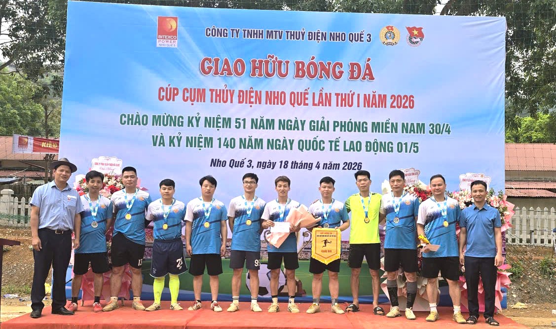 Cụm thủy điện Nho Quế vừa tổ chức thành công Giải bóng đá giao hữu tranh Cúp Thủy điện Nho Quế lần thứ nhất năm 2026 với sự tham gia của 4 đội bóng đến từ các nhà máy thủy điện tại Tuyên Quang.